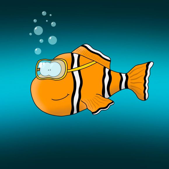 Als fröhlichen und niedlichen Begleiter für die neuen Kinder-Schwimmkurse im neuen Waldbröler Schwimmbad habe ich Neo, den kleinen Clownfisch mit der Taucherbrille, kreiert.